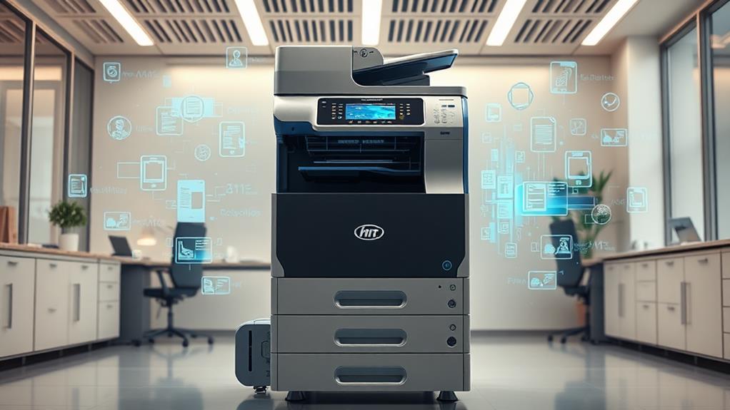 Innovative copier technologies have revolutionized document management by integrating cloud-based services, thereby enabling seamless storage, remote access, and enhanced collaboration through wireless connectivity. Energy efficiency has been a focal point, with power-saving modes and eco-friendly designs minimizing environmental impacts. Modern copiers embrace multifunction capabilities, combining tasks such as printing, scanning, and faxing into all-in-one devices, streamlining office workflows through advanced document handling and customizable interfaces. Connectivity has further improved with wireless options and enterprise-level security, while proactive maintenance guarantees reliability and minimizes downtime. These advancements considerably enhance operational efficiency, inviting exploration into their transformative potential.