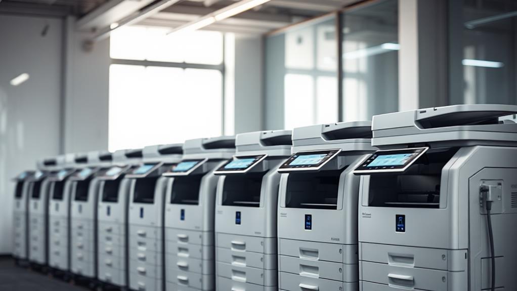 When selecting a copier, consider factors such as printing speed, connectivity options, and multi-function capabilities. Guarantee the device aligns with team needs while fostering efficiency, cost-effectiveness, and a collaborative workspace environment for seamless daily operations.
